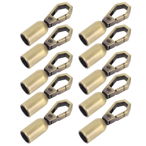 This 10-piece set of CHEOTIME rope end snap fittings includes snap hook fasteners crafted from zinc alloy with a standard 8mm hole. Each fitting is paired with a corresponding screw for secure installation, making them ideal for hanging, decorating, or finishing rope and cord ends in leather crafts, projects, and home décor. These bell-shaped snap hooks offer a stylish and functional finishing touch while ensuring long-lasting hold and versatile use across a variety of creative applications.