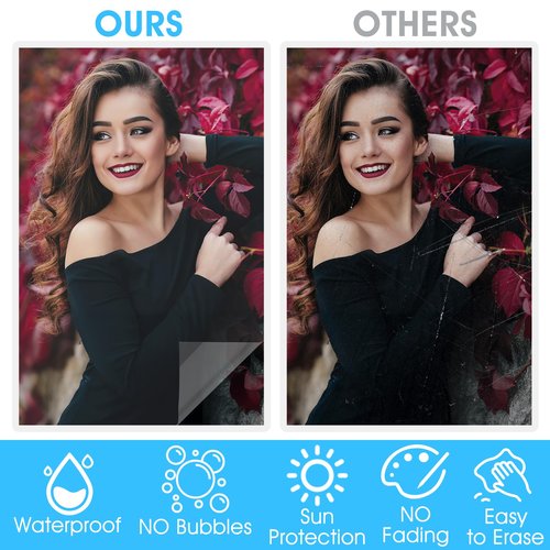 - 【Easy To use】- This laminating sheet is easy to operate and not easy to produce bubbles. You can cut it to the required size according to actual needs. Steps for use: First tear off a little bit of the backing film, then gently place the adhesive part on top of the photo. Finally, tear off the remaining backing film and press the paper until it is perfectly bonded.