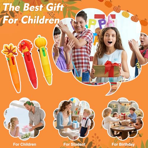 100 Pcs Thanksgiving Colorful Multicolor Pen in One Cartoon Cute Fun 4-in-1 Cute Pens Bulk Kawaii Maple Leaves Pumpkins Scarecrows and Turkeys Shape Cool Ballpoint Pens for Kids Fun Gifts