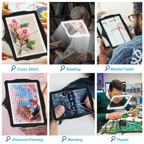 - 【10X Magnifier】This magnifier adopts innovative horizontal + vertical mode design, providing a wide viewing range of up to 9x6 inches, ensuring a wider field of view, no edge deformation, allowing you to easily cover the entire page of a book or newspaper without repeatedly moving the book position, ensuring comfort for long reading. 10x magnification provides a clear and detailed view, perfect for reading, hobbies or complex work, with our 10x magnifier, you can enjoy warm lighting and enhanced visibility in all delicate tasks, making your creative work easier and more enjoyable.