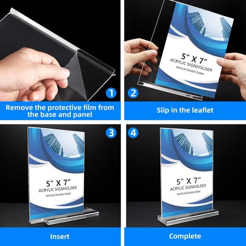 - Premium Quality Acrylic Sign Holder 5 x 7'': Our 5x7 acrylic sign holder is made from crystal clear acrylic sheets for exceptional clarity and durability, providing pristine visibility for your signage.