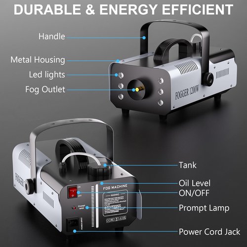 1200W Fog Machine with RGB 6LEDs Lighting Smoke Haze Generator Stage Effect Equipment for Play Theater Professional Stage Home Entertainment Halloween Party DJ Nightclub Wedding