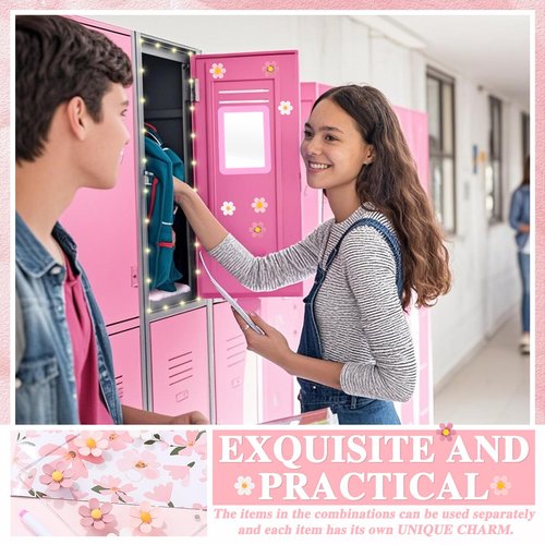 - Locker Decorations Accessories Set: This 15 Pcs locker accessories kit includes 1 magnetic mirror for locker, 1 locker whiteboard, 6 flower magnets, 1 pen holder, 2 magnetic hooks, 1 locker wallpaper, 1 locker rug, 1 marker, 1 string light Batteries not included ; perfect for organizing and decorating your locker, whether you're at work, school, or home