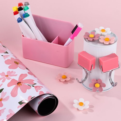 15 Pcs Locker Accessories Kit Pink Flower Magnetic Wallpaper Magnetic Mirror Whiteboard Pen Holder Magnet Hook Locker Rug Marker Pen String Light for Girls Back to School Essentials Locker Decorations