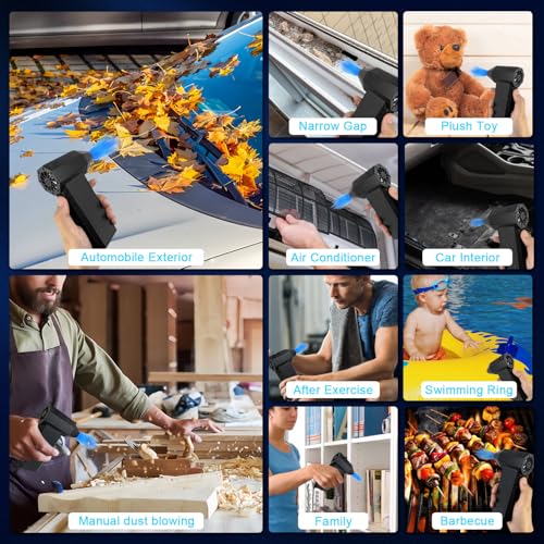 - Compact and Multifunctional: With dimensions of just 1.35 * 5.9 inches and a weight of 0.5 pounds, this portable air blower fits easily in your pocket, making it highly portable for both indoor and outdoor use. It¡¯s perfect for tasks like cleaning desks and keyboards, drying pet fur, and inflating air mattresses and lifeboats. Additionally, it¡¯s handy for outdoor activities like picnicking and fire-starting