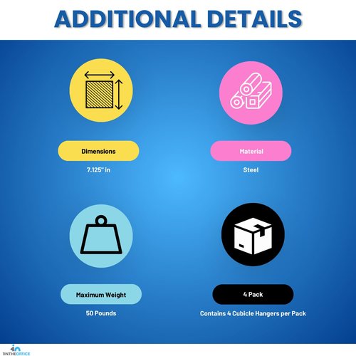 1InTheOffice Cubicle Hangers, Adjustable, 4/Pack