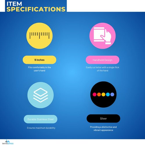 with stainless steel blade! Keep this handy tool at your desk, reception area, or mail room. Its 9" size fits comfortably in the user's hand and is perfect for storing away in a desk drawer or organizer.