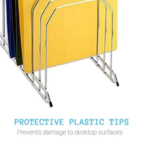 - Desk file sorter features a durable metal construction with a chrome finish, adding a contemporary style to any desk.