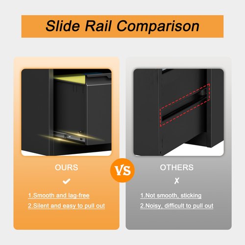 - đăSMOOTH MUTE SLIDE RAILSă: Our metal file cabinets are made with full retractable mute slide rails, open and close smoothly, easy to pick up and put down folders without noise. Perfect for office, home and school use. And the vertical appearance design can maximize the effective use of space, so that your space is not wasted!