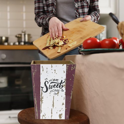 - Suitable Size: Our small wooden trash cans come in 2 sizes, Large: Top size 9.1inx6.7in (bottom size 6.9inx5.5in), height 11.8in, small size: top size 7.9inx5.5in (bottom size 6.1inx4.7in), height 10.2in.The proper size makes this garbage can available to organize waste in any room.