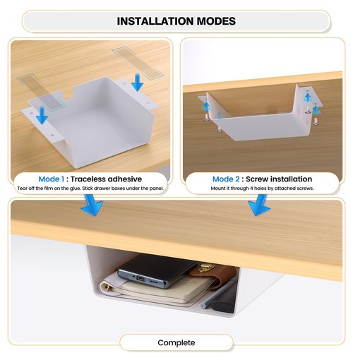 - Versatile Use: This under desk organizer is perfect for under shelf storage, under desk storage shelf, under desk tray, under table shelf, under the shelf drawer, and other under desk organizers and storage options. Get the most out of your workspace with the under desk drawer.