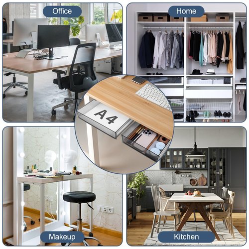 - Wide Application: The drawer attachment under desk is very convenient for under table, and you would notice, the drawer attachment under desk is not only suitable for laptop desk, study desk, office desk, but also suitable for dresser, bookshelf, wardrobe, cabinet, cupboard etc. More functions are waiting for you to discover.