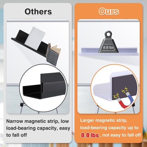 - Ideal Size: The magnetic display shelves measure about 17×2.2×2in, which can hold more books, as well as rulers, board erasers, etc.