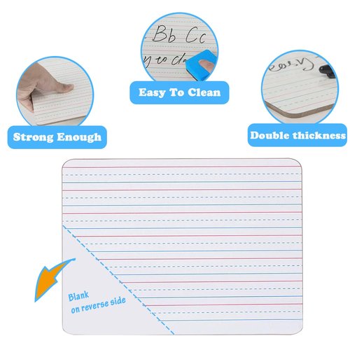 - Blank & Lined 2-Sided: The dry erase board with lines is fade-proof ruled on one side and blank on the reverse. Use the reverse side of the dry erase board for drawing, The dry erase board for kids can be used as a subject in mathematics, experiments, dictation, etc