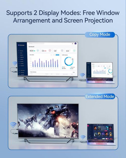 - Wireless Mirroring & Extended Display: Wireless HDMI transmitter and receiver choose between mirroring or extending your screen to adapt to your needs. Effortlessly project content from laptops, cameras, or TV set-top boxes to HDTVs, projectors, or monitors, offering a versatile, multi-functional experience.