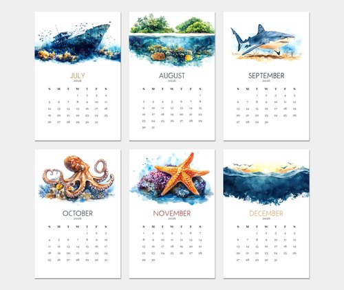 2026 Monthly Office Desk Calendar - Scuba Diving - Watercolor Style - Annual 12 Month - 4” x 6” Cards – Calendar Card Refill (Ocean Life)