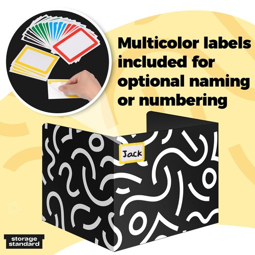 - Fun Design: Help students concentrate without sacrificing fun. Storage Standard’s custom white on black squiggle design helps bring fun and joy (and a bit of style!) to your classroom decor.