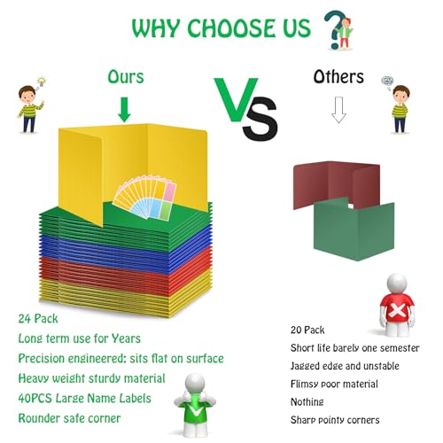24 Pack Colorful Privacy Floders for Student Desks - Durable Plastic Erasable - Testing Dividers for Classroom - Easy Clean Privacy Shields for Student Testing Desk dividers- Includes Extra Labels