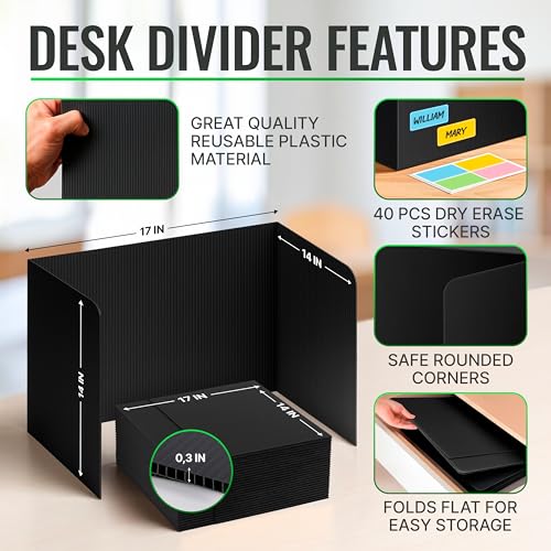 - ? Customizable Personal Space - This privacy desk divider includes name stickers to keep areas organized. As a perfect desk privacy divider, these testing dividers are sized ideally for student comfort and order.