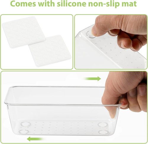 - Stackable and non-slip: These organizer drawers storage can be stacked together to better save storage space when they are not in use. And each bottom is equipped with anti slip pads to prevent them from moving in the drawer.