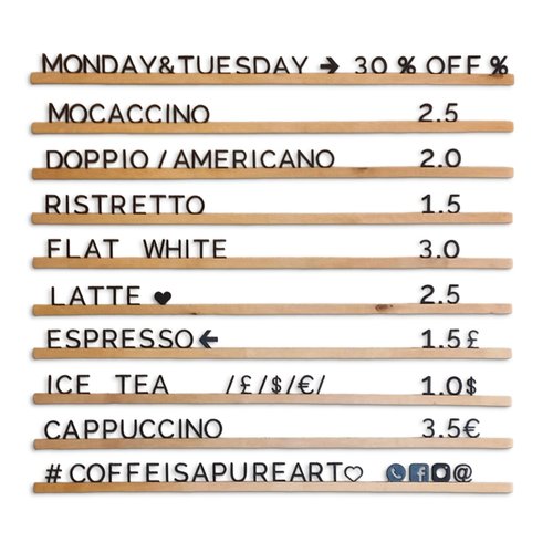 - Changeable Letters Menu: Includes 250 black wooden letters, numbers, symbols for creating custom message board, price list display board, or menu board for wall.