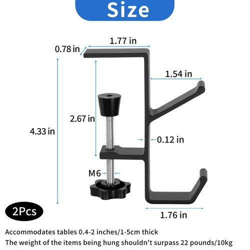 - Sleek Design: Enhance your desk with this hook that accommodates tables 0.4-2.17 inches thick securely holding heavy items.