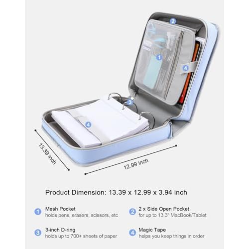 - [High Capacity]: This 3-ring zipper binder holds 700+ A4 sheets. The front pocket fits a 13" laptop or tablet. Inside, a mesh pocket organizes essentials like pens and cards. Additional storage is available in the accordion and back pockets
