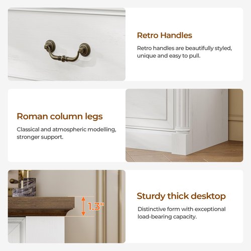 - Sleek, Unique Design:This farmhouse lateral file cabinet blends vintage elegance with modern durability. Framed drawer fronts, elegant and atmospheric Roman columns, vintage handles and natural wood grain texture are heavy and ornate with a rich, natural look that enhances the sophistication of your home office or living space