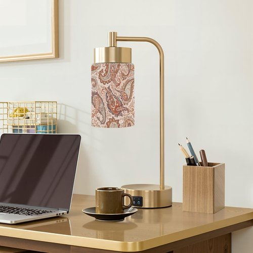 3 Pack Cylinder Glass Lamp Shade Intricate vintage paisley floral elements warm shades This seamless is Covers with 1-5/8" Fitter Opening Light Fixture Replacement for Table Lamp Bathroom Vanity Light