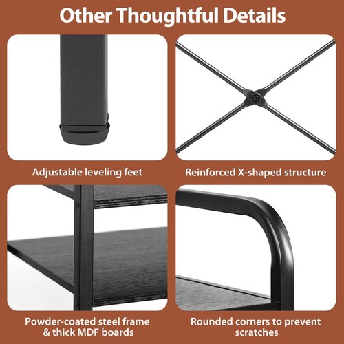 - Reinforced Mesh Boards & X-shaped Strips - Upgraded with side mesh boards and X-shaped structure, the 3-tier printer stand is more sturdy than similar products. Made of thick MDF boards and powder-coated steel frame, it is rust-proof and built to last.