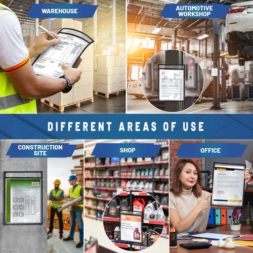 - Convenient Job Ticket Holder - The inside size of our dry erase pockets is 8.5 x 11 inch. Simply insert & remove up to 20 sheets in shop ticket holder. Dry erase document holder opens on short side and has a convenient eyelet at the top for handing.
