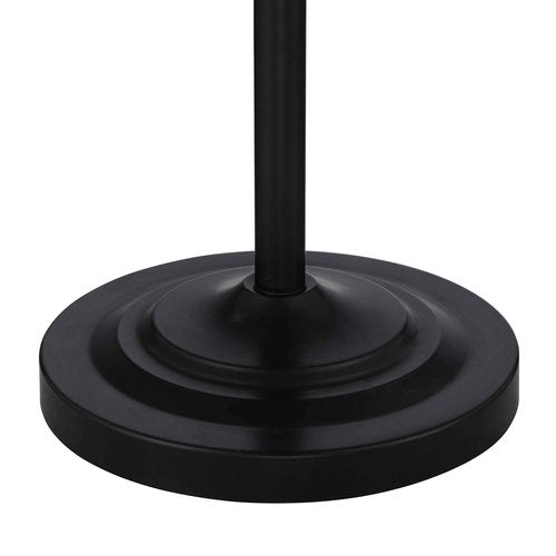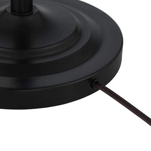 - Black finish. Metal construction. Cream fabric drum shades. 8-foot long black cords.