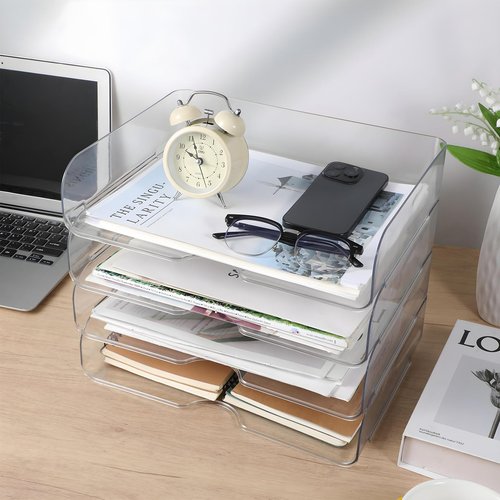- Multi-Functional Storage: The clear stackable paper trays is stackable and consists of 4 stackable trays, allowing you to flexibly combine them as needed, easily storing more items and saving desk space. It offers an ideal solution for improving cluttered workspaces and offers a variety of storage features.