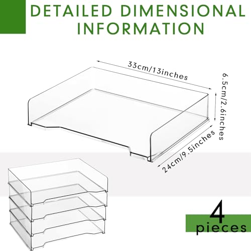 4 Pcs Stackable Letter Tray Rectangular Plastic Desk Organizer 13 x 9.5 x 2.6 in Paper Holder File Tray Accessories Rack for Desktop Office Desk Drawers (Clear)