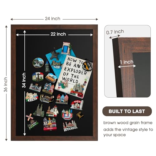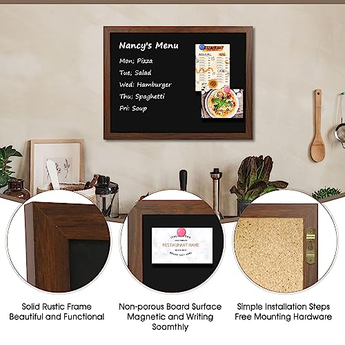 4 THOUGHT Chalk Board 24" x 36", Magnetic Large Chalkboard for Wall Rustic Blackboard Hanging Chalkboards Sign Menu Board for Kitchen Decor Office Home School 4 Markers 8 Magnets, Brown