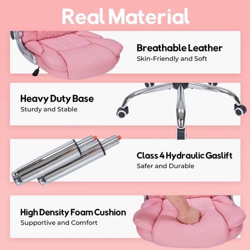 400lbs Executive Office Chair with Flip-Up Armrests, Big and Tall Computer Chair for Heavy People, Heavy Duty Ergonomic Comfy Chair, Breathable PU Leather (Pink)