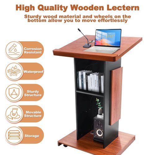 - Adjustable & Portable: Equipped with 4 lockable wheels, this mobile podium stand ensures easy movement and stability during speeches, presentations, or events.