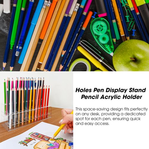 48 Holes Pen Display Stand Pencil Acrylic Holder for Craft Shows, Beaded Eyebrow Art Brush Rack, Makeup Tool Organizer, Home Office Desk & School Supplies Stationery Storage, Cosmetic Brushes Shelf