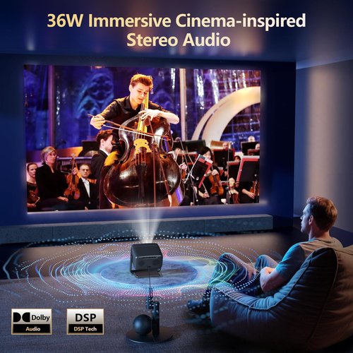 - Official Apps and Unparalleled 36W 360° SRS HiFi Sound---The 4k projector with wifi and bluetooth is pre-installed licensed apps, which allows us to stream contents directly from apps like NetfIix, YouTube, prime video, Disny+, HuIu without extra devices. Moreover, experience cinema-grade audio with our 36W DoIby-supported stereo speakers (with one-touch surround sound activation). Featuring deep bass and crystal-clear highs, it delivers room-filling sound—perfect for movie nights, parties, or outdoor gatherings