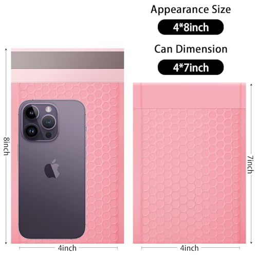 4x8 Inch Pink Bubble Mailers 40 Pack Self-Seal Poly Padded Envelopes Suitable for Small Businesses to Package and Mail Jewelry Cosmetics, Electronic Products, Cards (Pink, 4 x 8-40)