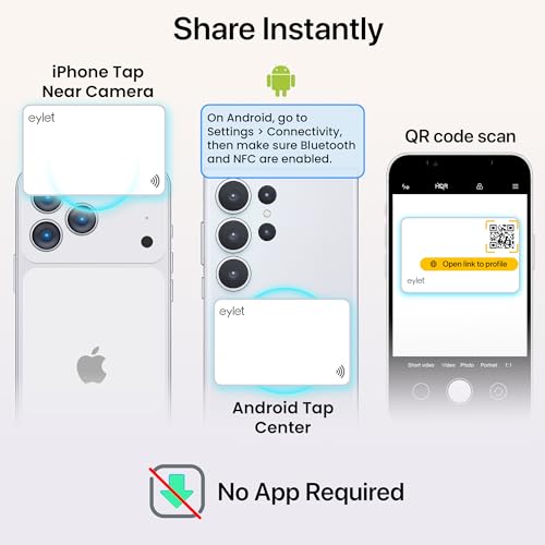 - No apps required, Share contact information with anyone using NFC or QR code.