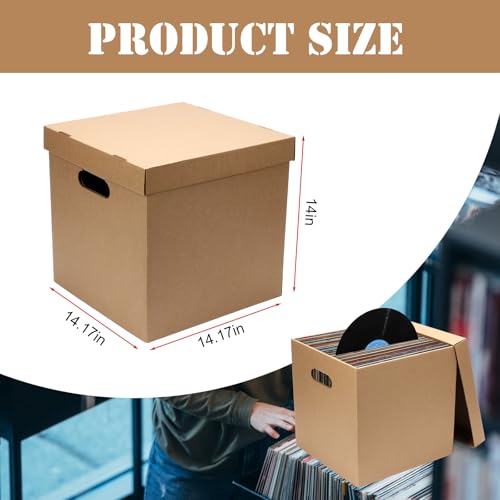 5 Pcs 12'' Cardboard Vinyl Record Storage Box, Moving Box with Double Thickness Handles and Lids Record Album Storage Crate, Cardboard Crate for Album Vinyl Storage
