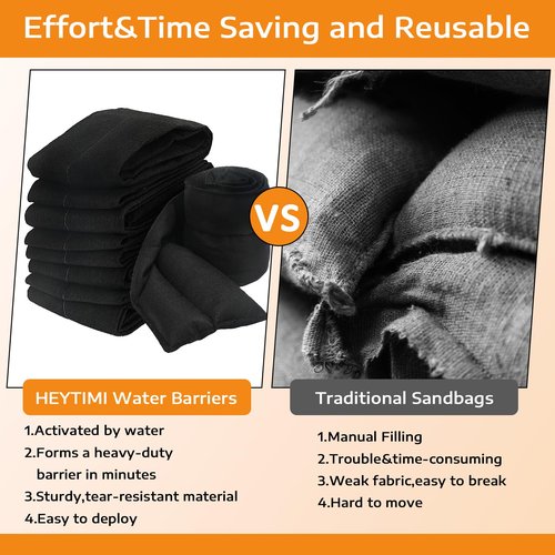- Handy to Store: Flood barriers quickly absorb and gel water, forming a robust and easily deployed barrier. Compact and lightweight for easy storage, they offer effective flood protection for your home and property