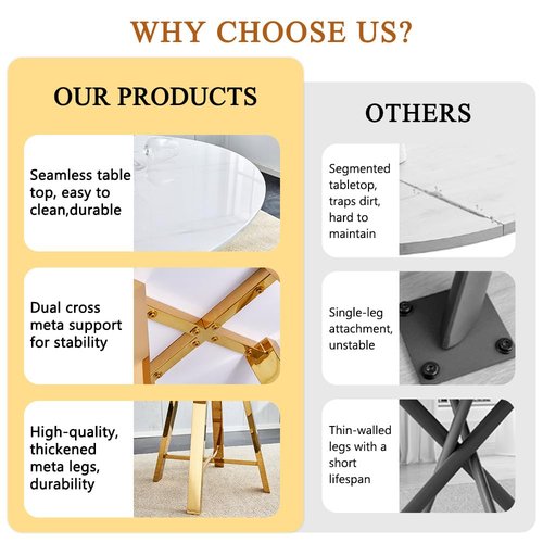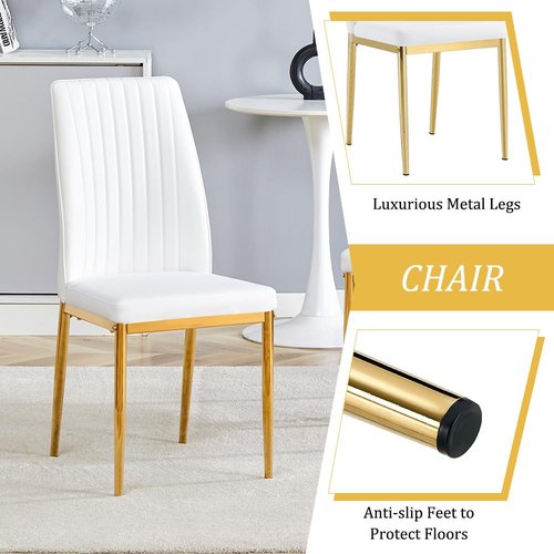 - 【Space-Saving Dining Solution with Style】Designed with compact spaces in mind, this small round dining table set for 4 fits effortlessly in condos, breakfast corners, and kitchens. The white and gold dining set pairs well with modern interiors, while the round shape enhances flow in tight areas. Whether used as a circle dining table set for 4 with chairs or a chic kitchen table and chairs set of 4, it delivers daily functionality. Also a top choice for comedores modernos pequeños.