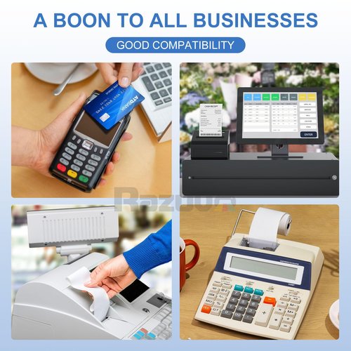 - Say goodbye to frustrating paper jams or faded prints. Razuvo thermal paper receipt rolls ensure smooth operation and legible receipts, keeping your business running seamlessly.