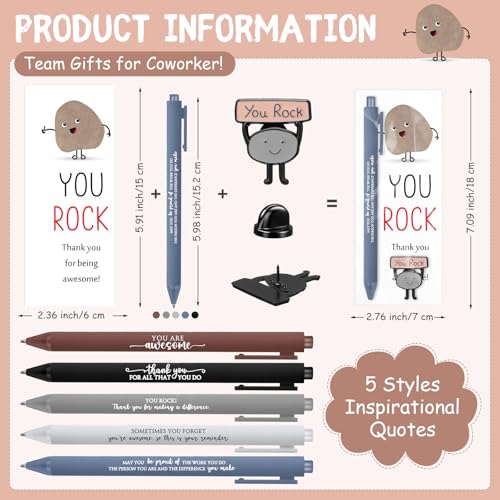 - Emotional Support Gifts: our package includes 50 multicolor inspirational pens, 50 " You Rock" cards, and 50 Stone-themed brooch with pin, ensuring that you have enough gifts to inspire and motivate others; This sufficient quantity allows you to send to employees, teachers, and students