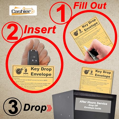 500 Night Key Drop Off Envelopes For Auto Shop Repair or Service, 4 1/8" x 9 1/2", After Hours Key Drop Envelopes with Self Seal Flap, Sturdy 24lb. Brown Kraft (500)