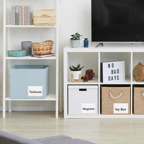 - WIDE APPLICATION: These tote labels for storage bins can be used in a variety of occasions, including homes, offices, libraries, department stores and more. These labels for storage bins are perfect for sorting and organizing cabinets, drawers, filing cabinets, toy boxes, storage bins, office supplies and more