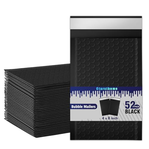- Perfect Black Opaque Poly Bubble Mailers 52 Pack : The poly bubble mailers outer size is 4x8 inch, and the inner size is 4x7 inch. You'll get 52 pack black self seal adhesives poly mailers with an easy peel off closure function. It is lightweight and affordable, not require extra packaging material, which can improve your company productivity at work