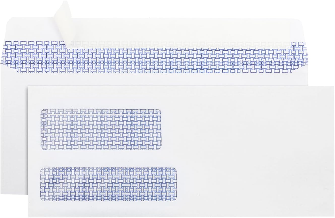 #9 Double Window Security Envelopes, HERKKA No.9 Double Window Business Envelopes Designed for Quickbooks Invoices and Business Statements - Number 9 Size 3 7/8 Inch X 8 7/8 Inch - 24 LB - 500 Pack